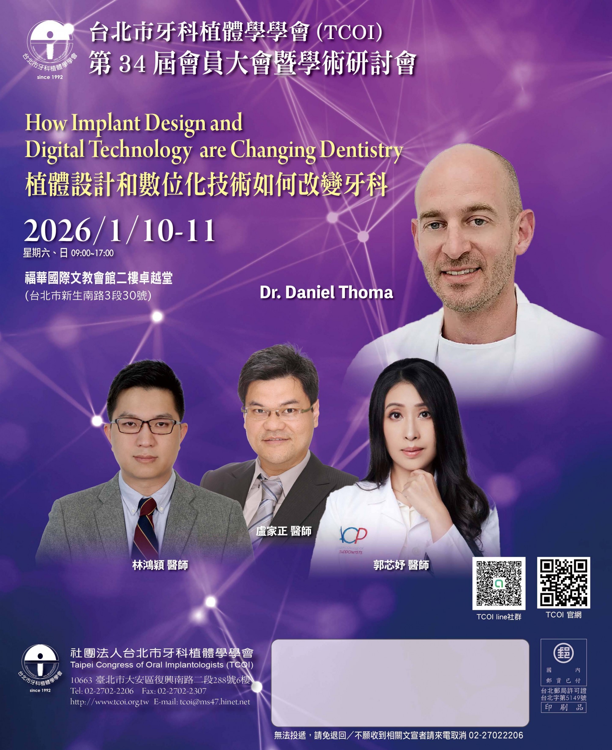 最新消息 INFORMATION 全部 本會公告 甄審考試 學術活動 轉知訊息 政府公告 2025.12.02 甄審考試 114年第一次專科醫師聯合甄試-114.11.30專科醫師筆試通過名單 2025.11.27 學術活動 社團法人台北市牙科植體學學會第34屆會員大會暨學術研討會 2025.10.30 學術活動 2025_ATIOI台灣國際植牙醫師學會年度大會暨ICOI 聯合大會學術研討會 2025.10.30 學術活動 台灣亞洲植牙醫學會會員大會暨學術研討會 2025.10.27 甄審考試 114年度植牙專科醫師聯合甄試 筆試 2025.08.14 學術活動 中華民國口腔雷射醫學會及中華民國口腔植體學會北區分會2025年聯合國際學術研討會 2025.06.05 本會公告 開會通知:召開114年度專科醫師大會 2025.05.20 本會公告 開會通知:召開第四屆第一次會員(代表)大會 2024.08.19 本會公告 召開113年度專科醫師大會 2024.08.19 本會公告 召開第三屆第二次會員代表大會暨聯合晚宴 2023.07.06 本會公告 開會通知:召開第三屆第一次會員(代表)大會 2023.05.23 本會公告 開會通知:第二屆第四次臨時會員(代表)會議 2025.12.02 甄審考試 114年第一次專科醫師聯合甄試-114.11.30專科醫師筆試通過名單 2025.10.27 甄審考試 114年度植牙專科醫師聯合甄試 筆試 2025.05.05 甄審考試 114年度第一次專科醫師聯合甄試口試-專科醫師通過名單 2025.01.22 甄審考試 114年度專科醫師聯合甄試-口試 2024.12.24 甄審考試 113年第一次專科醫師聯合甄試-113.12.22專科醫師筆試通過名單 2024.10.04 甄審考試 113年度植牙專科醫師聯合甄試 筆試 2025.11.27 學術活動 社團法人台北市牙科植體學學會第34屆會員大會暨學術研討會 2025.10.30 學術活動 2025_ATIOI台灣國際植牙醫師學會年度大會暨ICOI 聯合大會學術研討會 2025.10.30 學術活動 台灣亞洲植牙醫學會會員大會暨學術研討會 2025.08.14 學術活動 中華民國口腔雷射醫學會及中華民國口腔植體學會北區分會2025年聯合國際學術研討會 2025.06.05 學術活動 2025會員大會暨夏季學術研討會 2025.05.12 學術活動 中華民國口腔植體學會第15屆第一次會員大會暨國際學術研討會 View More