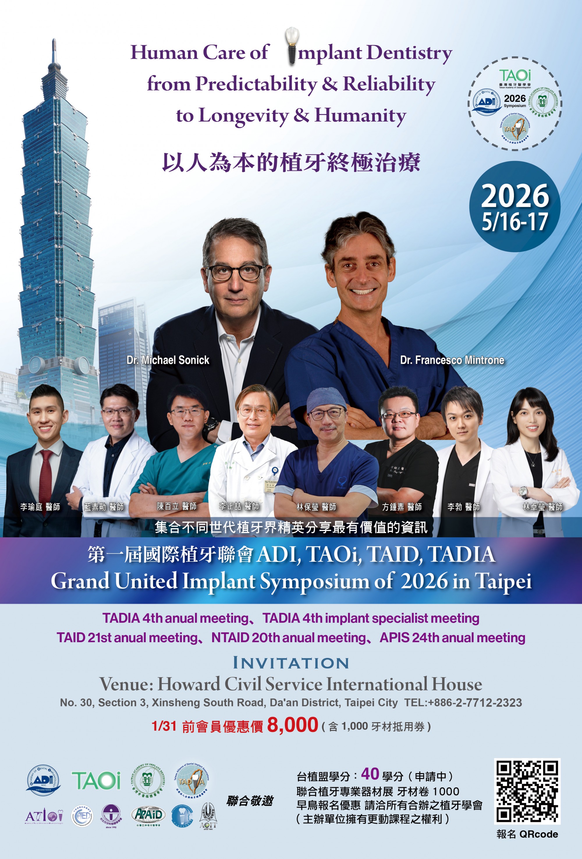ATIOI台灣國際植牙醫師學會年度會員大會暨ICOI TAIWAN SYMPOSIUM聯合大會學術研討會