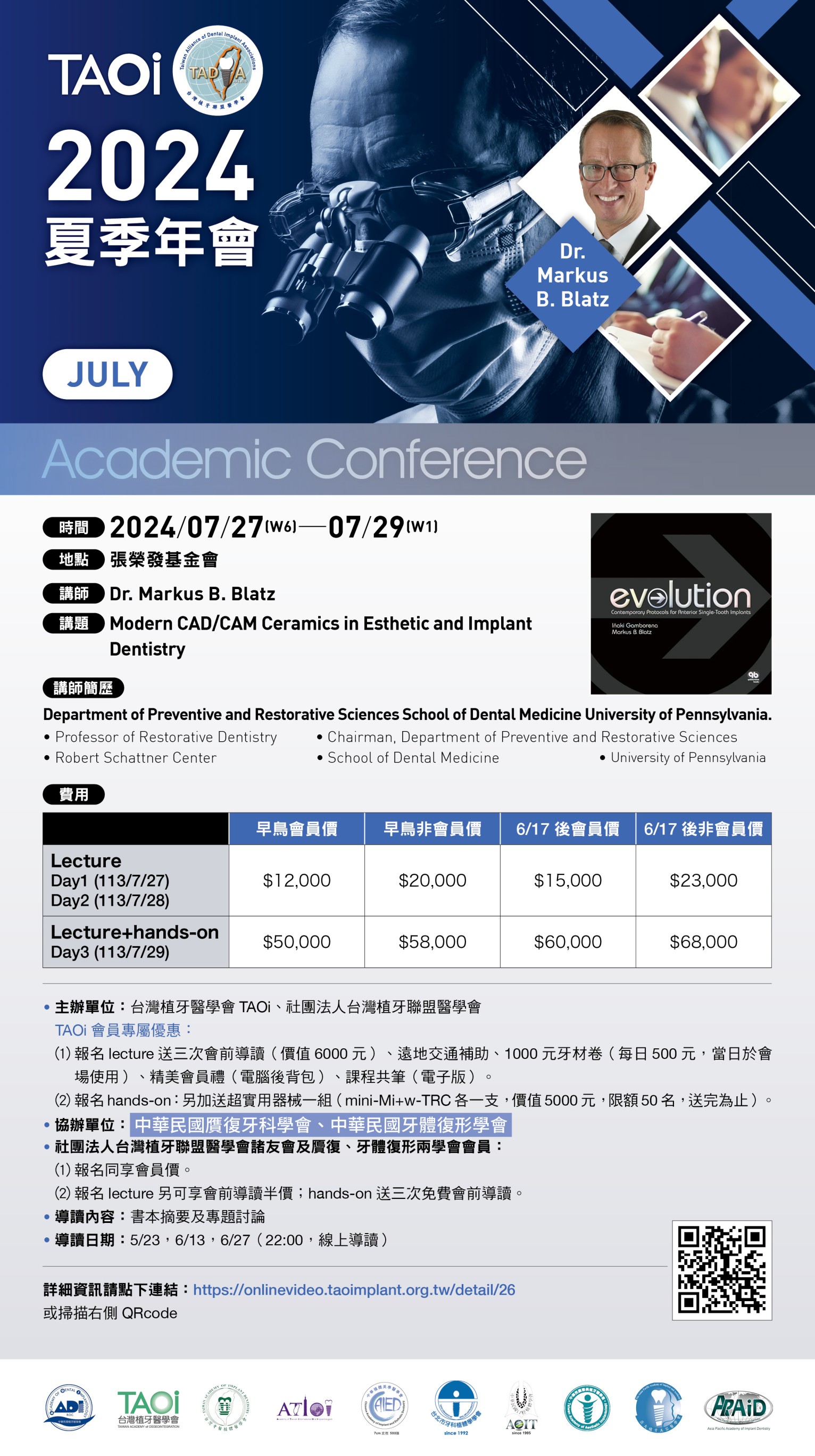台灣植牙醫學會2024會員大會暨夏季學術研討會